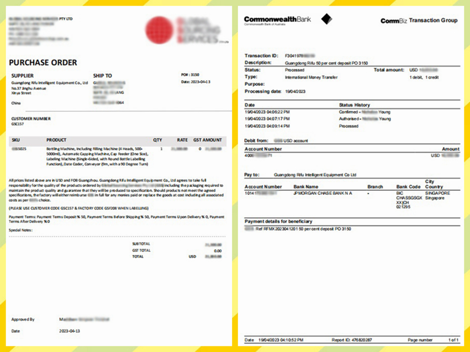 Our new customer from Australia placed an order on Bottling Machines, Including Filling Machine (4 Heads, 500- 5000ml), Automatic Capping Machine, Cap Feeder (One Size), Labeling Machine (Single-Sided, with Round Bottle Labeling Function), Date Coder, Conveyor (9m, with a 90 Degree Turn)